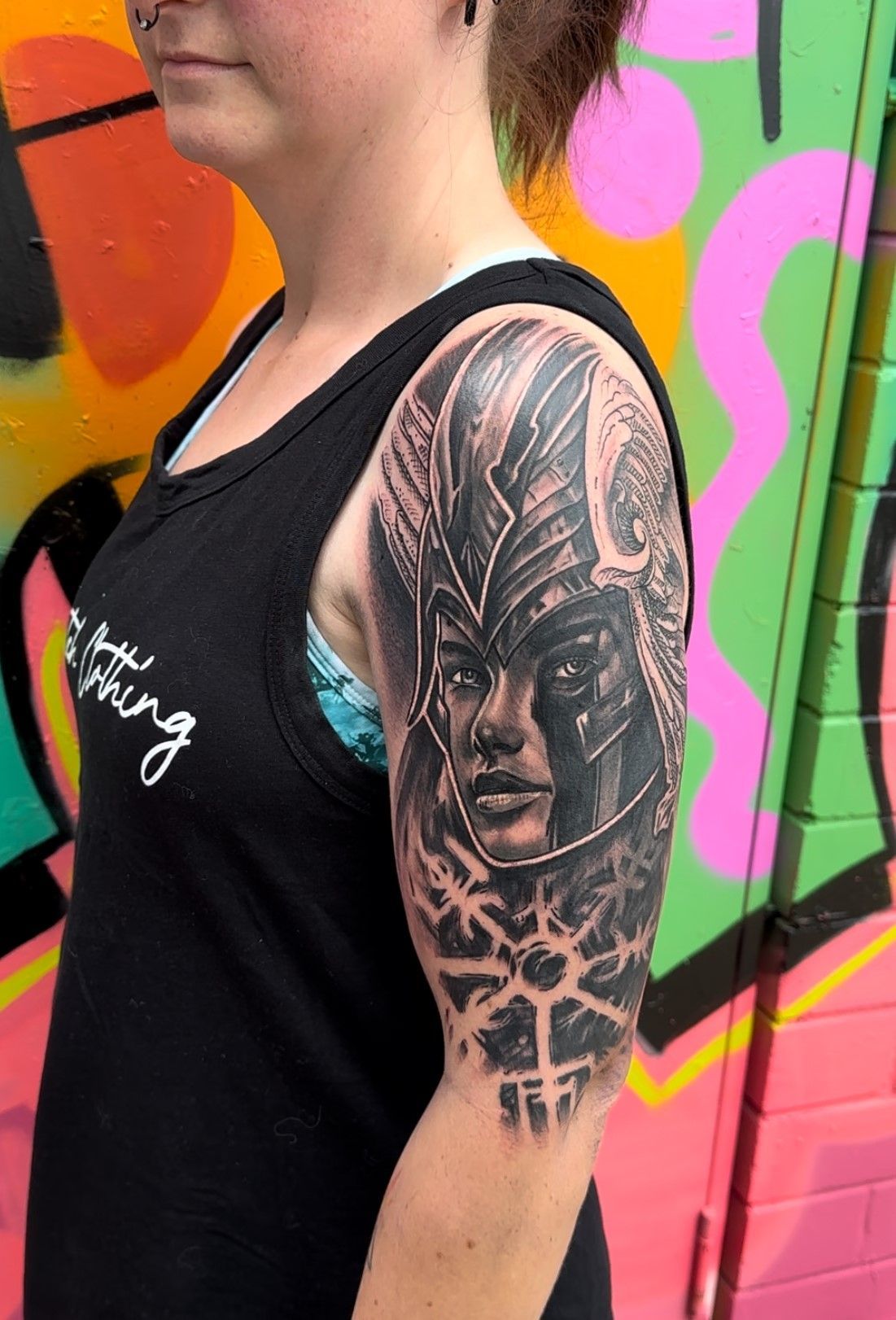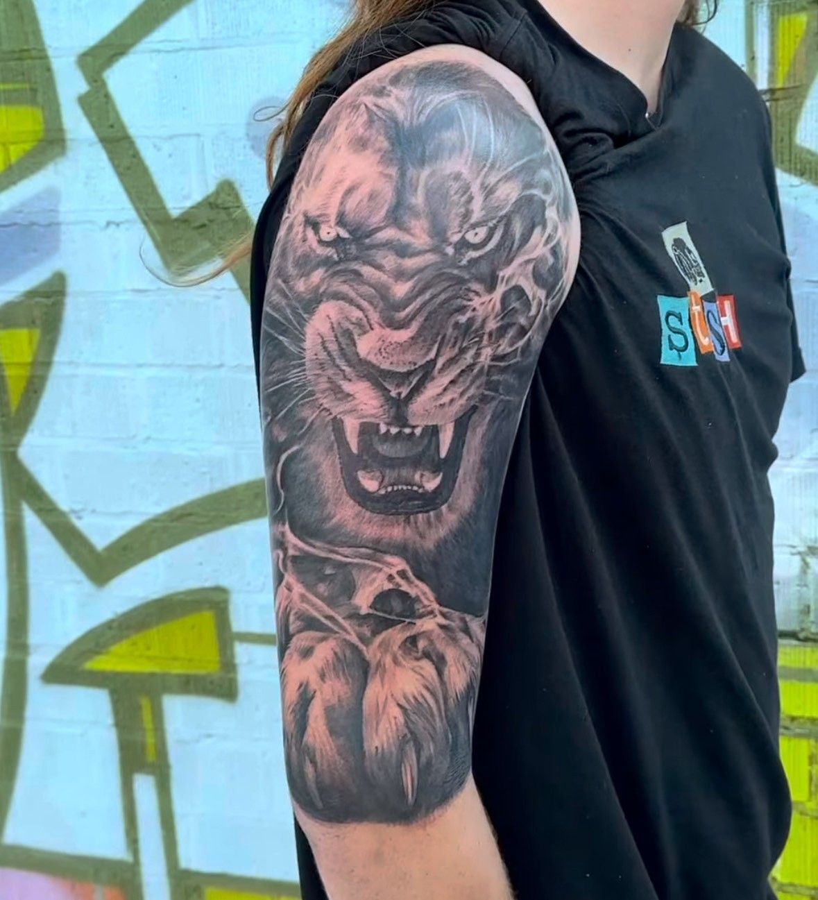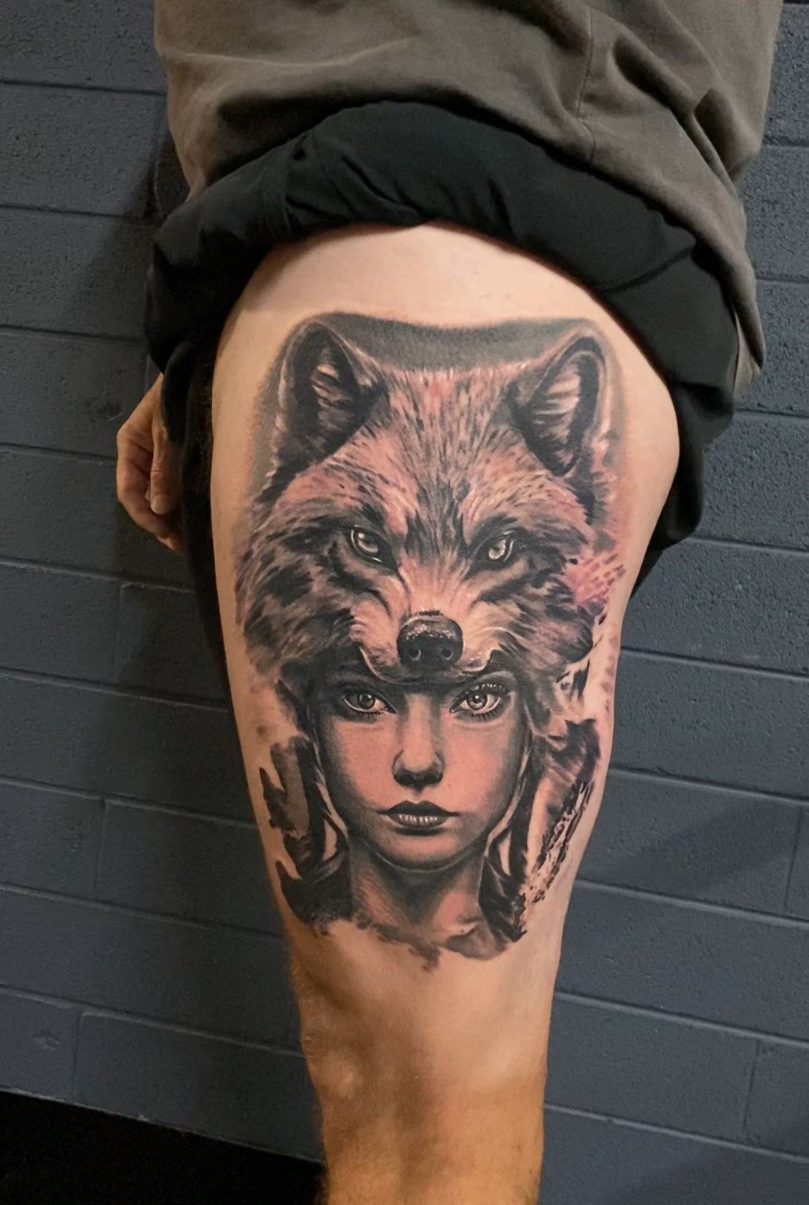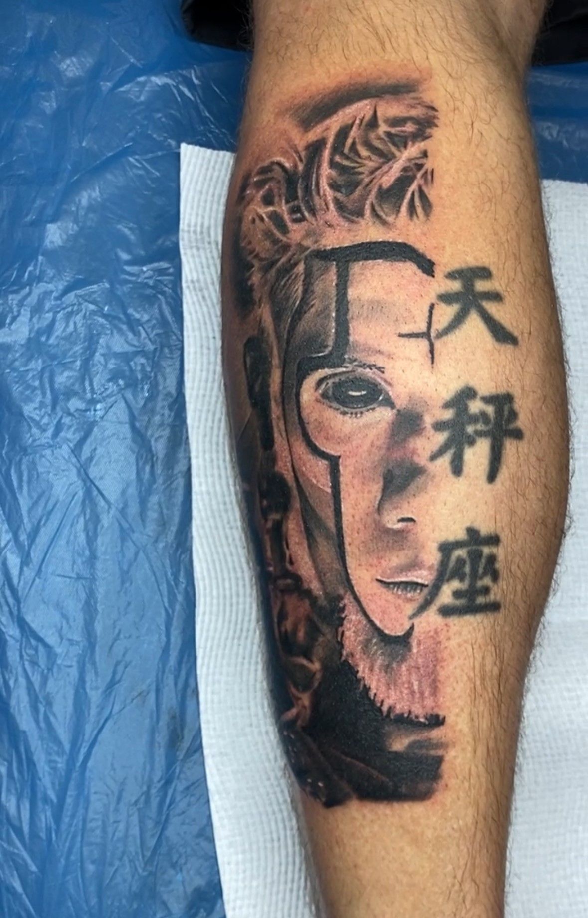 He loves all styles of tattooing especially the ones that challenge him. If he were to pick a preferred style it would have to be black and grey styles.