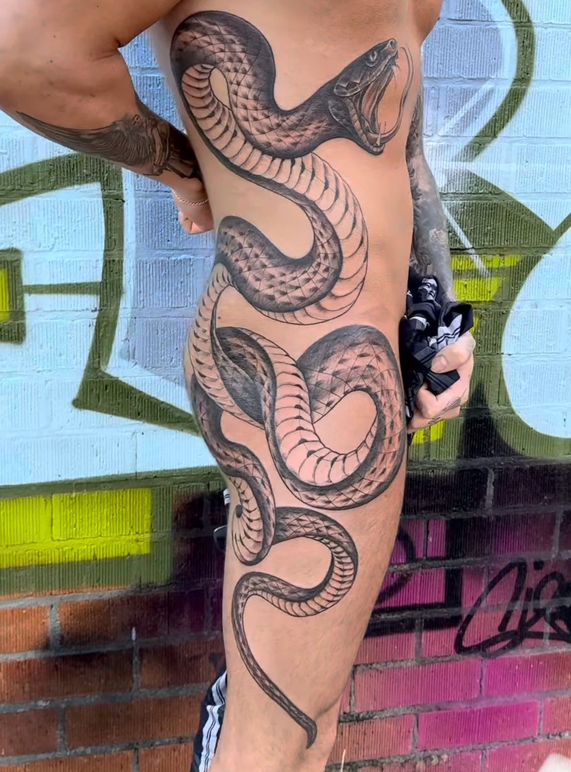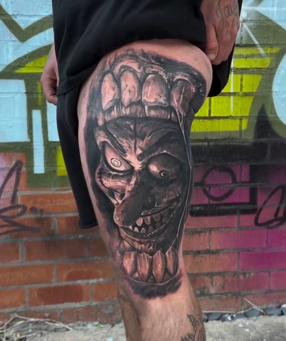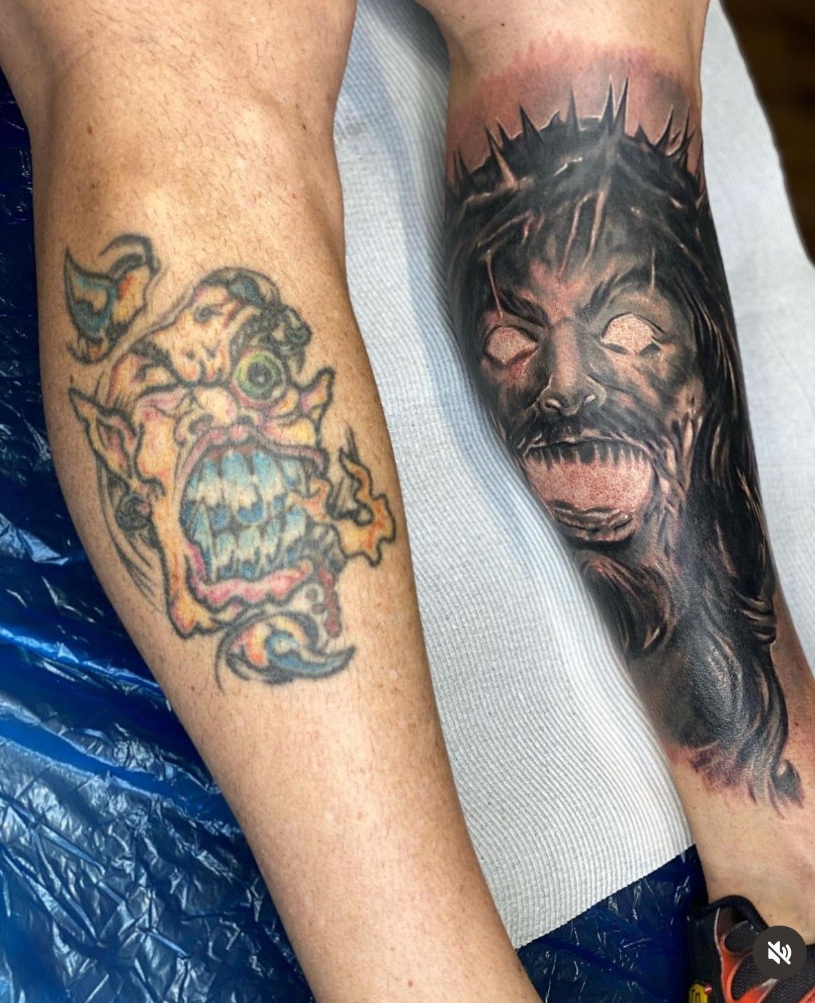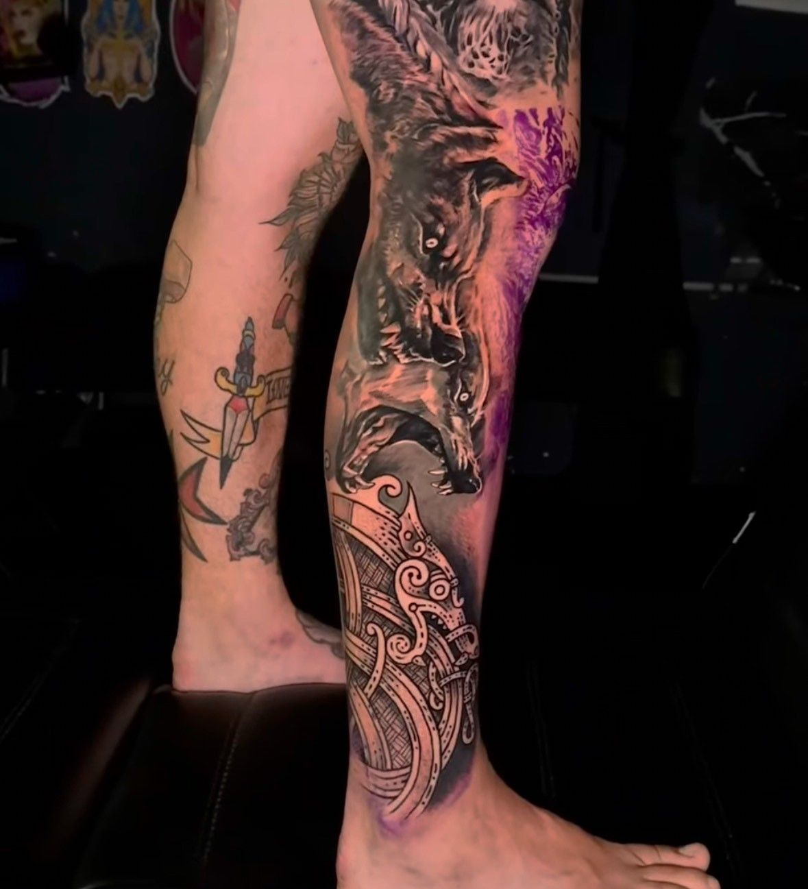 He loves all styles of tattooing especially the ones that challenge him. If he were to pick a preferred style it would have to be black and grey styles.